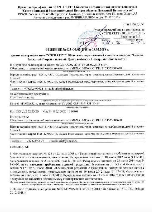 Все погреба TINGARD сертифицированы