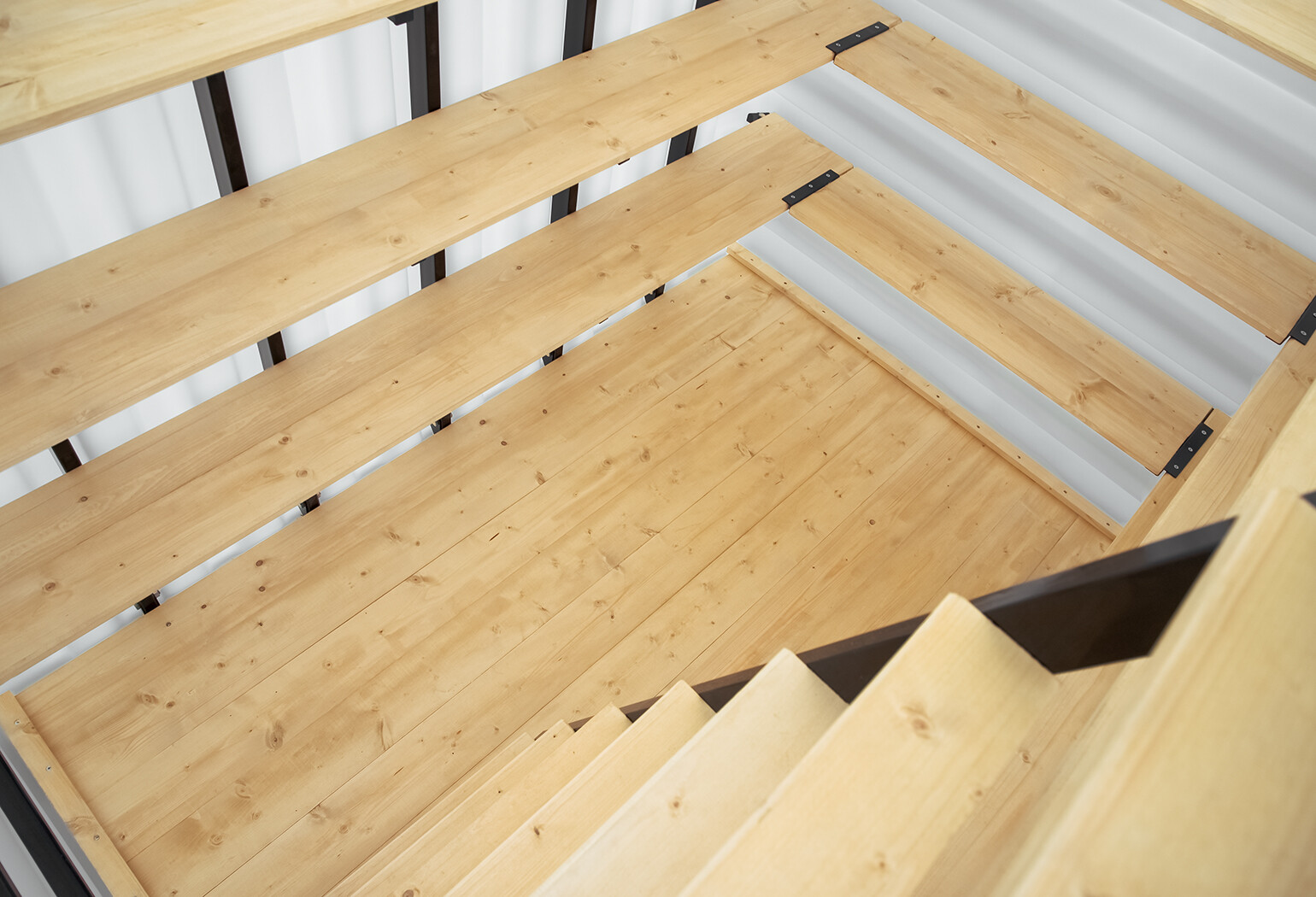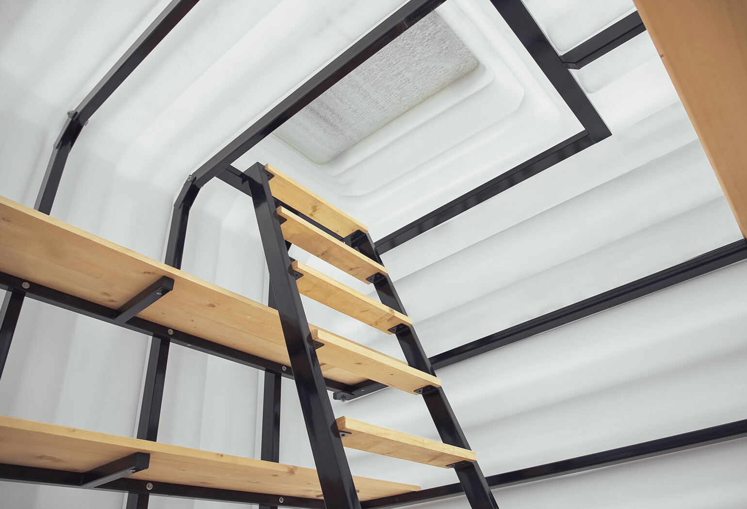 Надежная металлическая лестница с деревянными ступенями